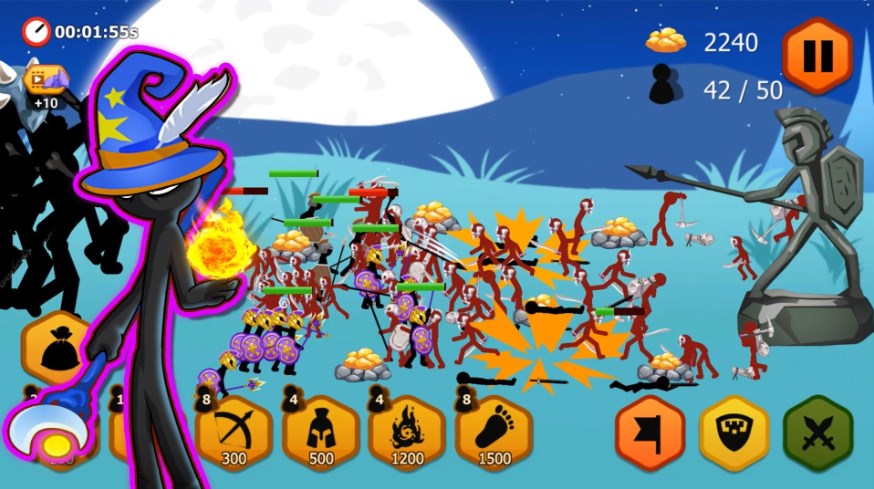 3、挑战最复杂的关卡,培养一支最厉害的火柴人队伍闯关。